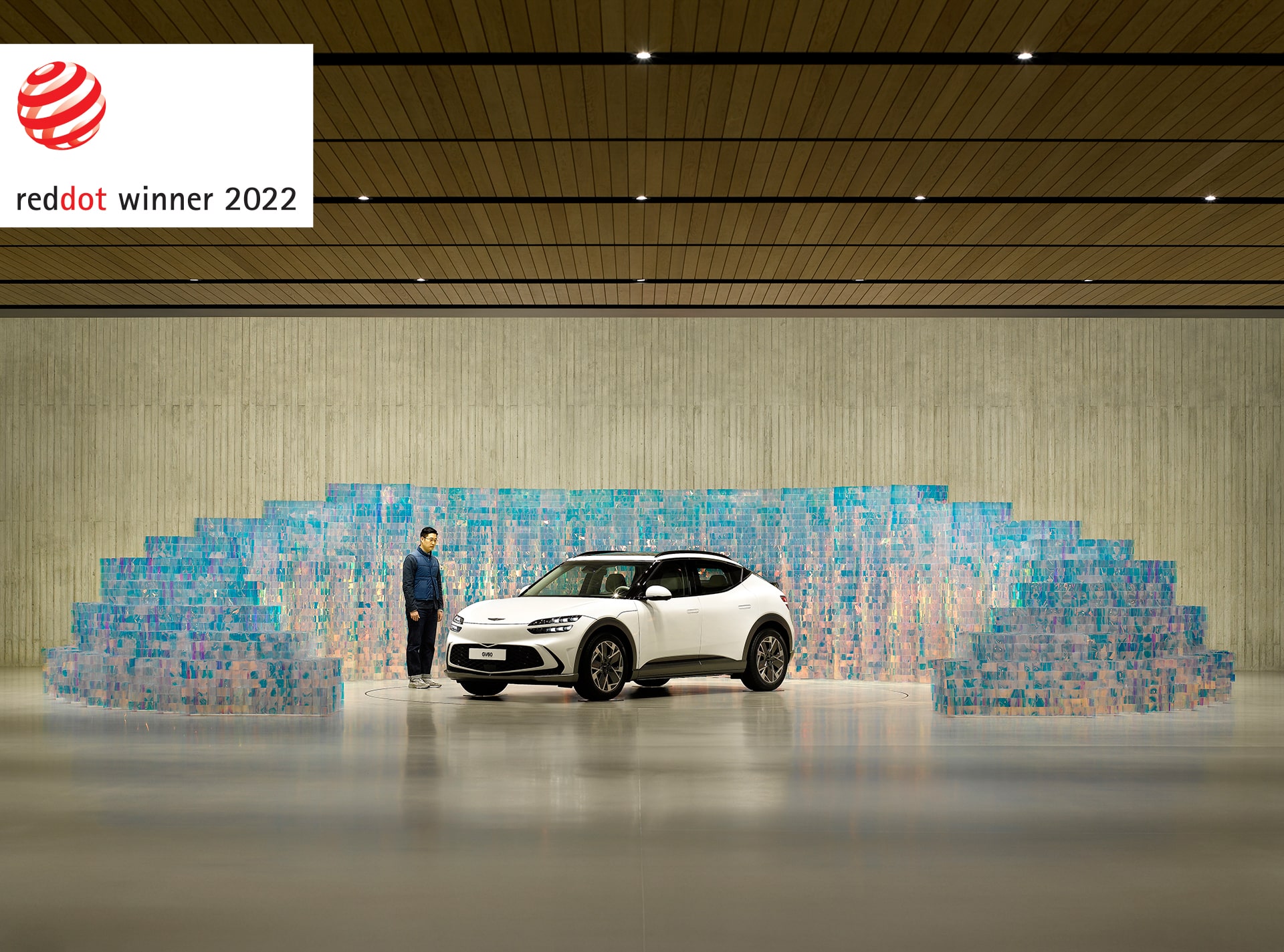 ابتكرت جينيسيس حملة GV60 التي ركزت على تلك “الكرة البلورية”. تضمنت التركيبات الفنية المصاحبة 400 × 400 × 80 وحدة مصنوعة من فيلم مزدوج اللون على الوجهين يمكن أن يحول أي موقع يشغله بانعكاسات قزحية تخلق مساحات متغيرة خاصة بها.
