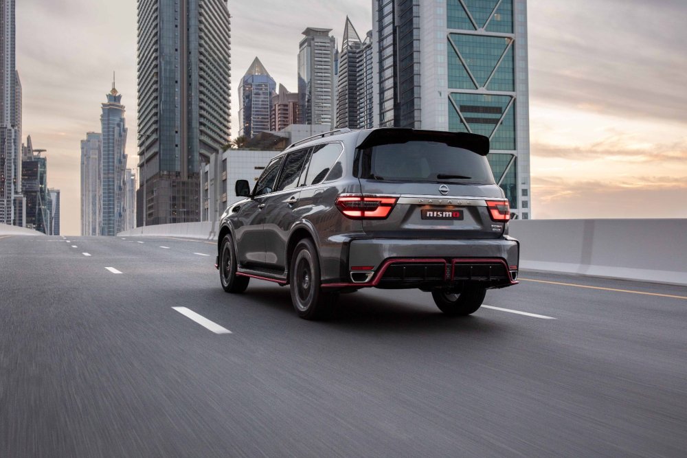 The distinctive design of the Patrol NISMO exudes sportiness with aerodynamic inserts and a variety of NISMO badges, heighted by the signature NISMO red line wrap around the SUV’s base. The honeycomb three-dimensional mesh emphasizes the signature V-motion grille, flanked by LED headlights to create an imposing presence on the road. In the back, dark chrome inserts and wraparound taillights make a striking impression, while the LED rear fog light – inspired by Formula One – emits the same brightness as the car’s brake lights in adverse conditions.
