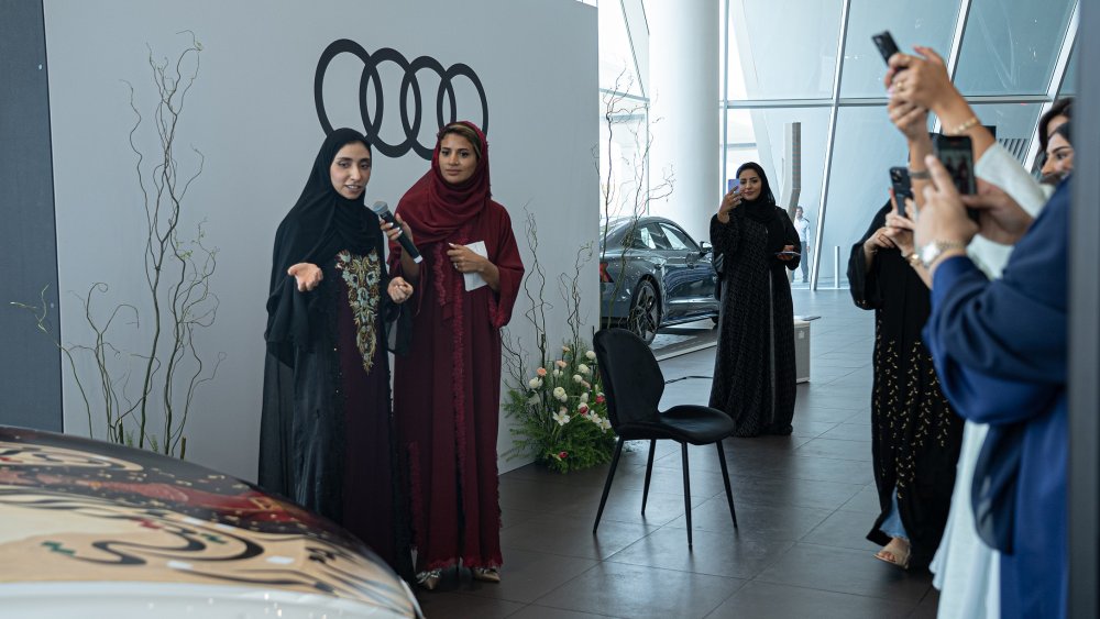 عُرضت أعمال الفنانة الإماراتيّة الموهوبة ضحى الحلامي بينما استمتع الحضور بوجبة فطور متأخرٍ وهم جالسون، حيث ابتكرت تصميماً حصريّاً تكريماً لهذه المناسبة. زيّن تصميمها الفريد غطاء محرّك سيارة أودي من طراز E-Tron GT، إذ شكّل هذا التصميم الفريد رابطاً بين صفات السيارة المميّزة التي ترمز إلى الابتكار والتقدّم ورسالة الحفل الأساسيّة المتمثّلة في التقدّم المستقبلي. كما استُقبل الضيوف على ألحان آلة العود المتناغمة لعازفة العود الإماراتيّة شمسة الجسمي، وإضافةً إلى ذلك دُعي جميع الحضور لاستكشاف مجموعة متنوّعة من تصاميم الحناء والتي صممتها الدكتورة الفنانة المشهورة د. عذراء.