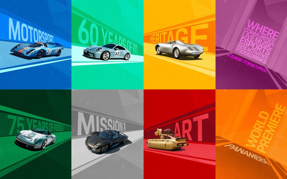 احتفالاً بالذكرى الخامسة والسبعين لتأسيس بورشه، وتحت شعار “حلم بالألوان الكاملة”، ينطلق مهرجان “رموز بورشه” للعام الثالث على التوالي، ويتضمن عرض سيارة جديدة للمرة الأولى على مستوى العالم، مع أكبر عدد من سيارات بورشه الكلاسيكية، وعرض لسيارة ميشن X التجريبية الفائقة.