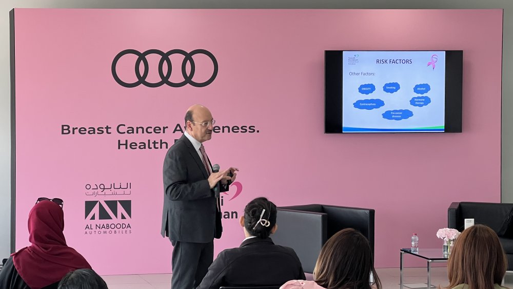 راستضافت شركة “أودي – النابودة للسيارات” بالشراكة مع المستشفى السعودي الألماني مهرجان الصحة للتوعية بمرض سرطان الثدي في معرضها بدبي يوم 18 أكتوبر 2023. تمثل هدف هذه الفعالية في زيادة الوعي بمرض سرطان الثدي وتعزيز أهمية الكشف المبكر، وذلك احتفالاً بالشهر العالمي للتوعية بسرطان الثدي.