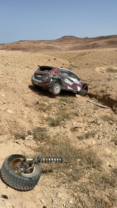 But the crew were forced to throw in the towel at the end of the stage with radiator and possible engine damage and co-driver Ata Al-Hmoud complaining of some back pain. The series leader and defending champion will hope to restart on Saturday if the car is not too badly damaged.