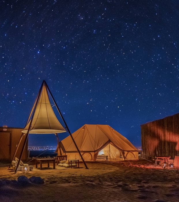 The park’s Mleiha Glamping experience also invites guests to marvel at the cosmos from luxurious tents nestled in the desert. Under the timeless canopy of stars, the night comes alive with campfire stories, BBQ dinners, and a connection to the universe that is as humbling as it is awe-inspiring.