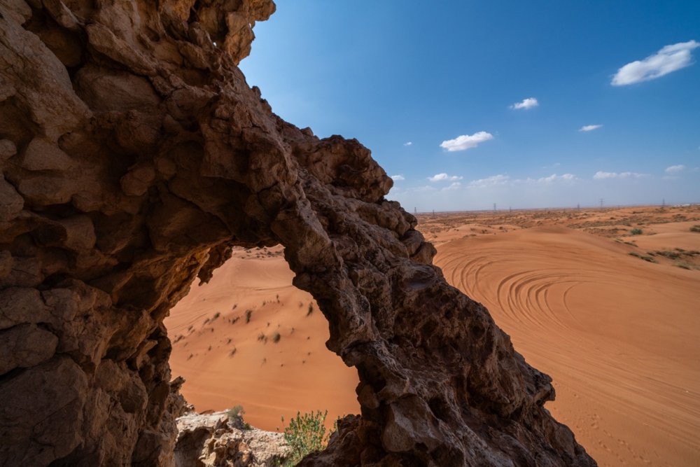 Mleiha boasts a unique and special landscape with diverse topography, featuring rolling Barchan sand dunes, alluvial gravel plains, and limestone outcrops — all within just a few kilometers of each other. This unique terrain allows specialist plants and animals to inhabit and thrive in their respective eco-habitats.